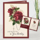 Featuring a beautiful traditional Catholic religious image of deep red roses with the holy rosary. Inside is the Blessed Virgin Mary with the Baby Jesus in her arms overlaid on the roses. A scripture verse is on the inside. All text and fonts may be modified to suit the occasion and recipient.