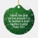Add your image to this Religious Holiday Ceramic Ornament with the back in green starry sparkle glistening glow capturing the Christmas magic and joy of a Christian season. The sacred writing, Psalm 133:1: "Behold, how good and how pleasant it is for brethren to dwell together in unity!" all in customizable text, ready for you create your own favorite bible verse in a festive devotional design hanging decorations. Order your personalized Christ teachings testaments today and make your custom inspirational doctrine keepsakes extra special with divine passages of the word of our Lord! 🎄⛪️
