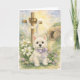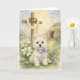 Share a faith-filled Easter message with this serene religious Easter greeting card featuring a sweet West Highland White Terrier (Westie) in a soft watercolor style. Set in a peaceful spring garden with blooming lilies, this Christian Easter design includes a cross draped in white cloth, the empty tomb, and a radiant sunrise symbolizing the Resurrection and the hope of new life. Gentle pastel tones and a tender Westie portrait make this card feel comforting, meaningful, and uplifting. Perfect for churches, pastors, friends, family, neighbors, dog lovers, and anyone searching for a “He Is Risen” Easter card, Resurrection Sunday greeting, or a Christian Easter card with cross and empty tomb imagery.