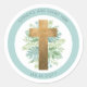 Elegantes goldenes Kreuz mit grünem Aufkleber, ideal für jede religiöse Veranstaltung. Ideal für Ihre Gastgeschenke oder als Umschlag Aufkleber. Erhältlich in zwei verschiedenen Größen. Die Blätter im Aquarell sind in einer Mischung aus hellen Minzgrün und türkisfarbenen Minztönen gehalten. Unisex Design Ausrüstung für Jungen und Mädchen. Äußerer Kreis in einem türkisblauen Minzton. Koordination von Einladungs- und Veranstaltungsprodukten. Teil unserer "Unisex Elegant Greenery Religious Events Sammlung".