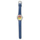 Este relógio da eWatchFactory é o acessório que você queria! Curta o conforto da pulseira de couro azul e não esqueça de personalizar o seu novo relógio com uma imagem, design ou texto.