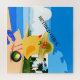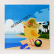 Ruheständisches Küken am Strand in ihrer Sonnenmütze und Flip Flops