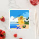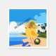 Ruheständiger Küken am Strand in ihrer Sonnenmütze und Flip Flops, oh so niedlich!