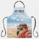 Mit dieser einzigartigen und lustigen Schürze zum Thema Pensionierung lächeln Sie jemandem ins Gesicht. Das Design zeichnet sich durch einen farbenfrohen Flamingo aus, der einen Hut und eine Sonnenbrille am Strand trägt, mit dem Ozean im Hintergrund. Der Text lautet: "RETIRED... nicht mehr mein Problem." Die Schürze ist in drei Größen erhältlich. Es ist perfekt für ein Altersvorsorgegeschenk, ein Grandelterntagsgeschenk, ein Geschenk für einen besonderen Verwandten, Nachbarn, Freund, Chef, Mitarbeiter oder jeden, der den Ruhestand genießt. Bitte stöbern Sie in unserer kompletten Sammlung von flamingo-Ruhestandsgeschenken, -karten, T - Shirt, Wohngestaltung und vielem mehr! Besondere Designwünsche akzeptiert.