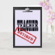 Eine Grafik einer Zwischenablage mit Papier von Künstlerin/Designerin Charmaine Paulson auf einer Remüden Teacher Grußkarte. Die Karte verfügt über Vorlagen für Ihre Personalisierung.