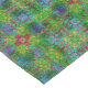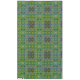 Ein lebendiges kaleidoskopisches Muster zeigt eine komplexe Anordnung von bunten geometrischen Formen und Blumenmotiven. Helle Grüntöne, Blues, Rot und Gelb schaffen ein visuell auffallendes und repetitives Design, das ein Gefühl von Symmetrie und Rhythmus hervorruft.
