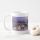 Grafische Illustration des Rens im Winter in den Nordlichtern.