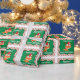 Niedliches Waldgeschöpf erste Weihnachtsausrüstungsbeschreibungen eine entzückende kleine Grafik des roten Fuchses. Der kleine rote Fuchs trägt einen Sankt-Weihnachtshut mit den Rengeweihen. Es gibt einen Sprig der Stechpalme auf der Front der Weihnachtsmannmütze. Über dem Fuchs ist kundengerechter Text im weißen Schriftart, in dem Sie den Namen des Babys addieren können. Ist unten Text, der erstes Weihnachten sagt. In jedem Quadrat ist ein Hintergrund der diagonalen roten, weißen und grünen Streifen für eine festliche Touch. Dieser super niedliche Fuchs in einer Ren-Weihnachtsmannmütze ist für das Feiern des ersten Weihnachten des Babys! perfekt!