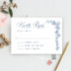 Stilvoll bearbeitbare, leicht zu bedienende Hochzeitsfeier Vorlagen, weitere Gegenstände (Einladungen, uAwg, Dankeschön-Karten, Schreibwaren & Dekor) mit dem gleichen Design sind im Laden erhältlich. Für weitere Anpassungen klicken Sie bitte auf "Diese Vorlage personalisieren", dann auf "Bearbeiten mit dem Entwurfswerkzeug". Elegante Vintage Blue French Garden Blumenkarte RSVP Card.