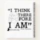 Ein Notizbuch mit Rene Descartes's Gesicht auf der Vorderseite und seinem berühmten Cogito "Ich denke, daher bin ich" auf der Rückseite.
