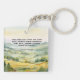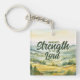 This Christian keychain features the phrase “Renewed Strength in the Lord” set against a calming watercolor green valley background. The design pairs simple typography with a peaceful nature theme, creating a meaningful and encouraging message.
