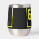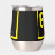 Behalt deinen Wein cool am Party im Hinterhof oder Picknick auf der Pferderennbahn mit diesem personalisierten Thermalweintumbler. Ein perfektes Geschenk für Rennfans, um ihr Lieblingsgetränk in der Sonne zu genießen. Personalisiert mit einem Namen oder Veranstaltungsnamen oder beidem, fügt dieser Weinwäscher jedem derby Party oder Pferderennen Party eine farbenfrohe Touch hinzu. Dieses individuelle Design wird durch Reitpferdsatteldecken oder Satteltücher inspiriert, wie es auch bei den großen Pferderennen bei den Vollblutbekleidungen der Fall ist. Erhältlich in verschiedenen Farben und Zahlen. Mix und Match für ein lustiges Aussehen. Schwarzer Hintergrund mit gelben Akzenten. Traditioneller Stil für Pferde Nummer 6. Erhältlich auf rostfreien oder weißen Oberflächen.