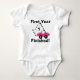 Fun rosa Rennwagen mit einer Schachbrett-Fahne. Passen Sie Ihren Lieblingstext an oder verließ, wie es ist. "Erstes Jahr beendet"