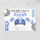 Race Car Thema Baby Dusche Einladungskarte mit Aquarellbildern eines Rennwagens.