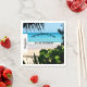 Ein schönes Meeresbild ist der Hintergrund für dieses Boarding Pass Destination Tropical Beach Design. Eine lustige Destination maßgeschneiderte Papierserviette. Tropischer Strand mit Aqua-Blues und modernem Text.