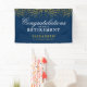 Dieses Banner ist perfekt für jedes Party in der Rente. Das Design bietet goldene Glitzer Konfetti auf dunkelblauem Hintergrund und ist mit Skripttext betont.