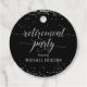 Diese eleganten und festlichen Gastgeschenk-Tags verfügen über silberne (simulierte Folie) Konfetti mit passenden Buchstaben, die "Pensionskasse Party" in einem wunderschönen Skript-Schriftart. Die Hintergrundfarbe ist schwarz, kann aber in eine beliebige Farbe geändert werden.