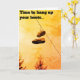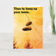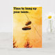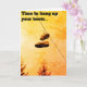 "Zeit, um Ihre Stiefel aufzuhängen" Rentenkarte, mit der "Happy pension"-Nachricht drinnen. Enthält ein Bild eines Trainerpaares, das an einer Telefonleitung hängt.