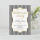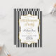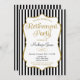 Eine elegante Party Einladung mit schwarz-weißen Streifen mit Imitaten goldenen Glitzer Akzent Rahmen und Schwarz-Gold Text. Diese raffinierte und stilvolle Pension einladen ist eine extravagante Art, zu ehren, dass bald Rentner und beruflich werden. Für eine überraschende Version, klicken Sie einfach auf die Schaltfläche Anpassen und fügen Sie eine Textzeile am unteren Rand, die sagt "Shhh...es ist eine Überraschung!"