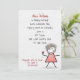 Niedliches Peitschmädchen mit Rotwein aus Glas, Haar und Gingham Kleid auf weichem weißem Hintergrund für ein Party in Rente. Text kann bearbeitet werden.