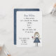Niedliche Stick-Frau mit Rotwein aus Glas, Platin-Betthaar, Sneakers und einem blauen Stechkleid auf weich weißem Hintergrund für ein Party im Ruhestand. Text kann bearbeitet werden.
