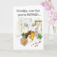 Eine Ruhekarte für einen Großvater mit einem älteren Mann, der sich in seinem Gartenschuppen mit seiner Zeitung, einem Getränk und seinem Hund entspannt; aus einer Aquarellillustrierung von Judy Adamson. Der Text auf der Vorderseite kann schnell und einfach auf Anfrage durch meinen Shop geändert werden.