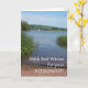 Eine Gästehaus-Guter-Wunschkarte mit einem Foto von Judy Adamson vom Llangorse See in Wales, mit Segelbooten in der Ferne.