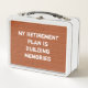 Erkennen Sie Ihren engagierten Mitarbeiter mit diesem einzigartigen Altersvorsorgegeschenk mit einer roten Ziegelwand, die beide Seiten dieses Lunchpakets schmückt. Die roten Ziegelschichten bilden den Hintergrund für "Mein Plan ist es, Erinnerungen zu machen", der in dicken weißen Kreiden auf der Wand steht. Der gesamte Text kann leicht personalisiert werden, um Ihren geschäftlichen Anforderungen gerecht zu werden. Diese Lunchbox ist ideal für einen langen Tag des Angelns, Bootes oder der Entspannung am Strand für einen Angestellten, der sich aus einem Gebäude, einer Baustelle oder einem echten Anwesen zurückzieht.