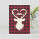 Stilvolle Rentier-Silhouette auf schwarz und rot karierten Weihnachtsgrüßkarte.