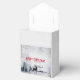 Ein Gefälligkeitskasten mit einem Aquarellbild mit einem Rentier aus schwarzer Silhouette, der unter einigen Kiefern stehend ist. Graues Schwarz-Weiß-Farbschema mit neutraler Farbe.