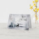 Weihnachtskarte mit einem Aquarellbild mit einem Rentier aus schwarzer Silhouette, der unter einigen Kiefern stehend ist. Graues Schwarz-Weiß-Farbschema mit neutraler Farbe.
