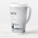Eine verstorbene Tasse mit einem Aquarellbild mit einem Rentier aus schwarzer Silhouette, der unter einigen Kiefern stehend ist. Graues Schwarz-Weiß-Farbschema mit neutraler Farbe.