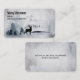 Visitenkarte mit einem Aquarellbild mit einem Rentier aus schwarzer Silhouette, stehend zwischen einigen Kiefern. Graues Schwarz-Weiß-Farbschema mit neutraler Farbe.