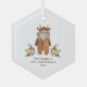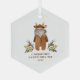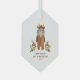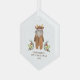 Rentier Outfit Baby's 1. Weihnachtsschmuck. Ein elegantes, sechseckiges Glasdekor, das mit einem niedlichen Aquarelldesign eines Baby Rentier Outfits und Blumenelementen aus Weihnachtszeit dekoriert ist. Personalisieren Sie die Vorlage mit dem Vornamen des Babys (besitzergreifende Form mit Apostrophe + S) sowie mit dem Jahr. © Kimbellished, LLC