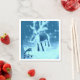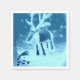 Ideal für Party und Tierliebhaber mit einer blauen Schneeszene mit einem Rentier, der auf einen Rentier hinabschaut, der mit Schnee um sie herabfällt. Aus meinen originalen Glasmalereien ©Annabel Potter