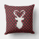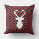 Rentiere Silhouette auf schwarz und rot karierten Throw Kissen. Schwarze Streifen haben eine Touch von rustikalem Stil.