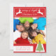Retro Holiday Card mit Ihrem Foto ändern Sie in das aktuelle Jahr. Die Silhouette "White Rentier" auf Rotem Hintergrund und ein moderner Weihnachtsbaum aus dem Mittelalter mit einem Stern auf Top