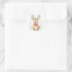 Niedliche Rentiere mit rotem Schal im Schnee sitzen
