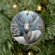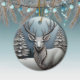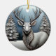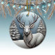 Dieses Rentierdekor aus runder Keramik besticht durch ein elegantes, einzigartiges festliches Design. Der Hintergrund zeigt eine ruhige Weihnachts-Schneeszene mit einem blauen Himmel. Unten wird eine malerische Winterschneelandschaft mit Bäumen sanft vom Mondglühen beleuchtet. Silberhirsche mit Geweih fügt dem Zauber eine Touch von Zauber und Weihnachtsweih hinzu. Das gleiche Bild ist vorne und hinten. So wird sichergestellt, dass der Schmuck, egal wie er sich dreht, immer festlich und vollständig aussieht. 🦌 🎄