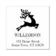 Eine personalisierte Gummi-Briefmarke mit einem überspringenden Rentier über Ihrem Namen und Rücksendeadresse Text unten. Ideal, um eine zusätzliche handgestempelte Touch zu Ihren Urlaubskarten hinzuzufügen.