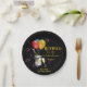 Stilvolle Pensionspapier-Teller und Schüssel mit einem Eis-Eimer , Flasche flauschig Schaumwein Flöte Gläser Ballons und Konfetti mit schwarzem Hintergrund und die Typografie in dunkelgelb/goldfarben " Lass der Feierlichkeiten beginnen". Dies würde ein fantastisches geschlechtsneutrales Party für einen Rentner, Mitarbeiter, eine Familie oder einen Freund sein. Jeder Text kann angepasst werden, indem die Titel geändert werden und das Zitat dann personalisiert wird, indem der Name und das Datum geändert werden. Die Hintergrundfarbe kann bei Bedarf geändert werden