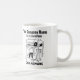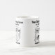 Auto repariert Cartoon auf einer Tasse. Geben Sie Ihren Firmennamen und Ihre Firmennummer ein. Garagenarbeiter oder Automechaniker bei der Reparatur von Autos.