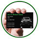 Design-Vorlage für Visitenkarten für Automobile mit einem Auto, das eine defekte Windschutzscheibe im Hintergrund dieses einfachen bearbeitbaren, benutzerdefinierten Layout hat. Entwickelt für ein Unternehmen, das die Reparatur, den Austausch, die Reparatur und die Instandhaltung von Kraftfahrzeugen übernimmt.