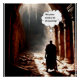 Eine römische Figur steht in einem alten steinernen Flur, umgeben von herabgefallenem Schutt und Säulen, und fragt sich, wie viel Reparaturarbeit erforderlich ist.
