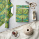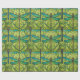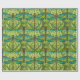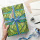 "Repeating dragonfly pattern on green wrapping paper, shown unrolled and flat. The design features teal dragonflies on vibrant green foliage."