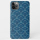 Repeating geometric Art Deco pattern with teal lines and orange dots on a dark blue background, creating a symmetrical and elegant design.