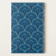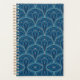 Repeating geometric Art Deco pattern with teal lines and orange dots on a dark blue background, creating a symmetrical and elegant design.