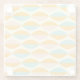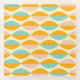 Repeating geometric pattern with overlapping leaf shapes in orange, teal, and pink on a beige background. The design conveys a retro, vibrant feel.