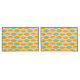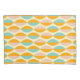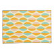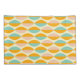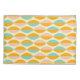 Repeating geometric pattern with overlapping leaf shapes in orange, teal, and pink on a beige background. The design conveys a retro, vibrant feel.