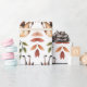 Repeating pattern of lions, giraffes, and elephants with green and orange leaves on white. The design is vibrant, conveying a playful, nature-inspired theme.